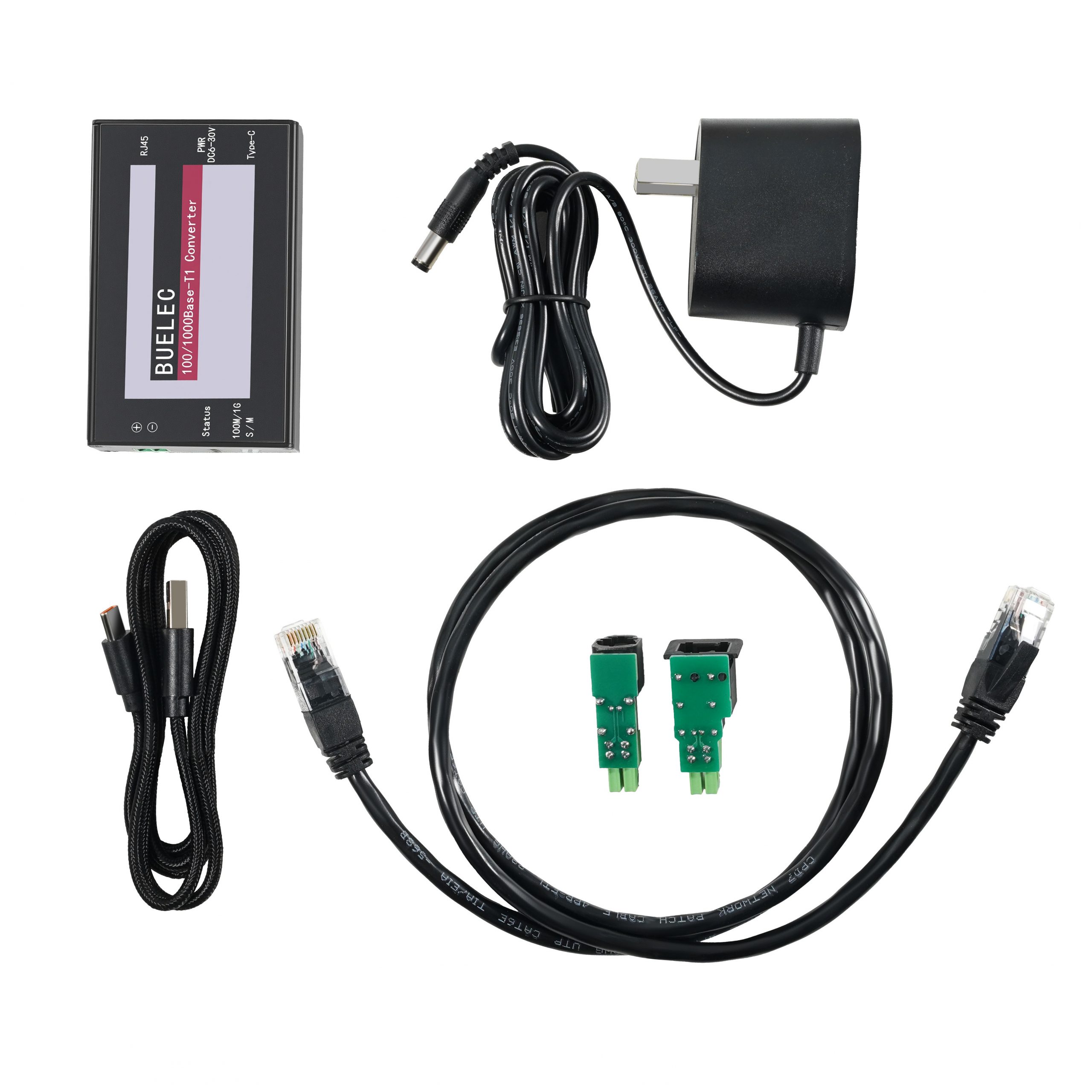 The BUELEC 100/1000Base-T1-TX-E is a compact, high-performance media converter designed to bridge automotive single-pair Ethernet (100/1000BASE-T1) networks with standard twisted-pair Gigabit Ethernet (100/1000BASE-TX) infrastructure.